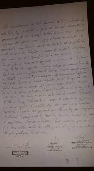 Además se agendó un encuentro con el Jefe Comunal a realizarse el día lunes 3 de julio donde se podrá avanzar con la resolución del conflicto.