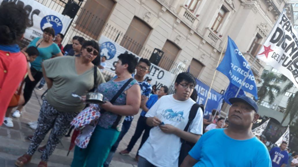 Susana Bejarano, responsable del comedor y merendero "Nolasco" de Palpalá presente en la marcha señaló que por falta de apoyo, cerraron el comedor y ahora dan sólo 2 días de merienda cuando en principio daban 3 veces.