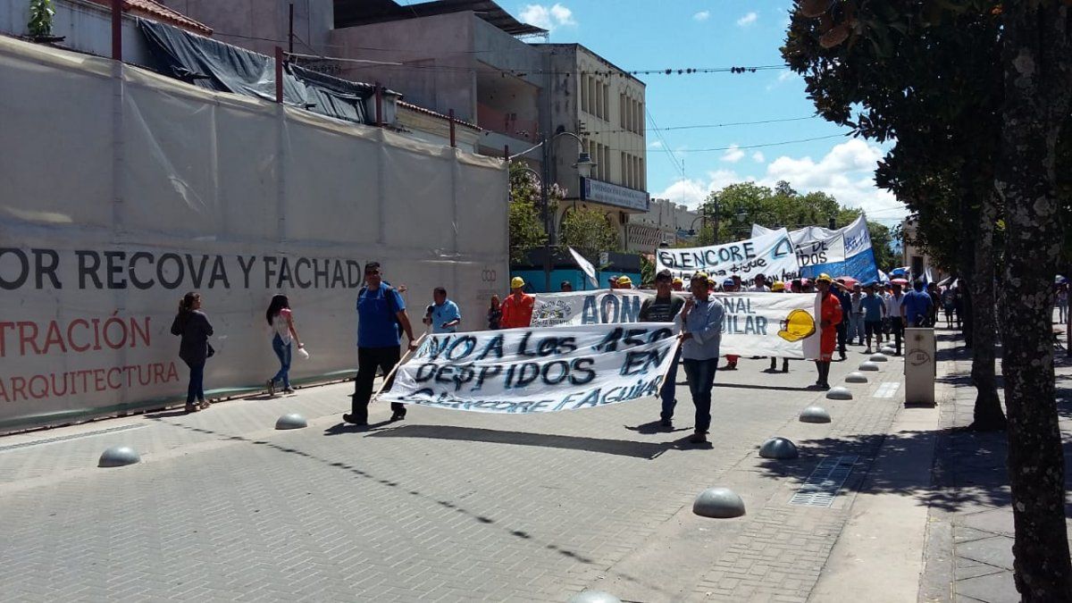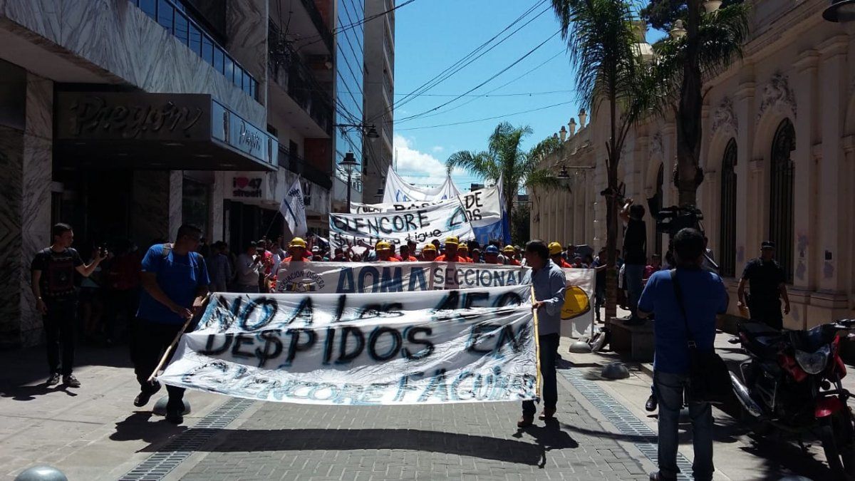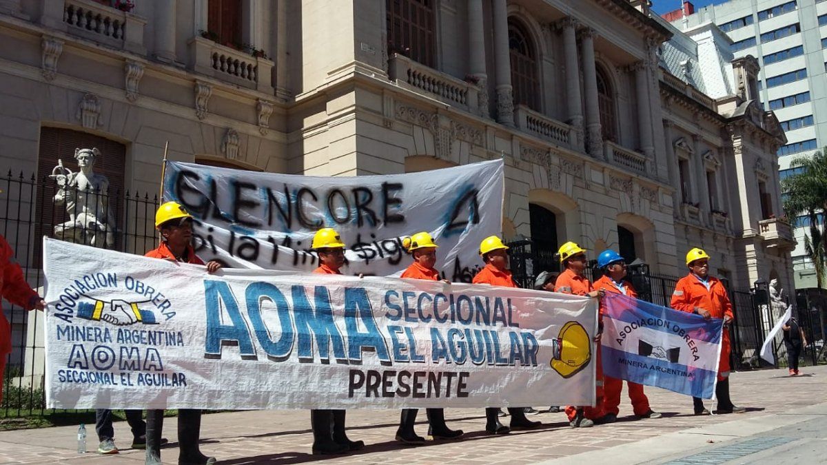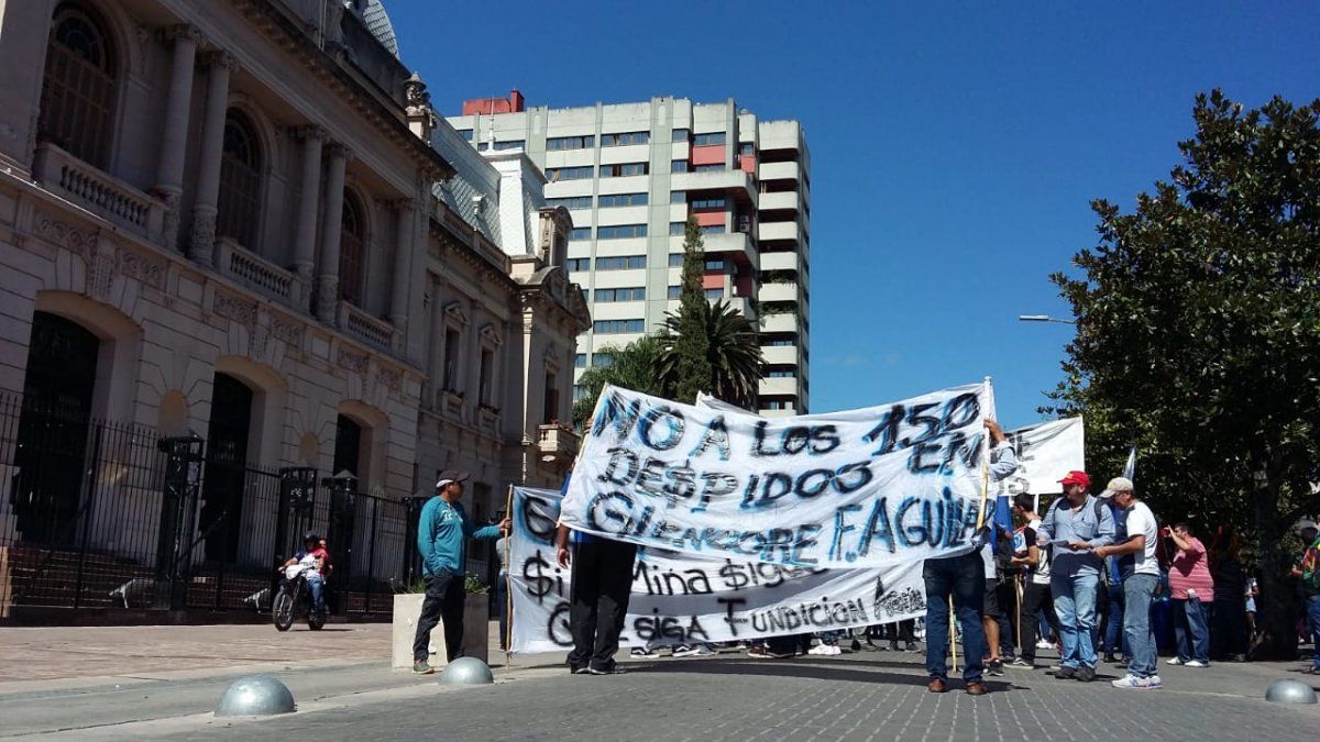 Esta mañana, organizaciones gremiales, sociales y políticas acompañaron la movilización que realizaron los trabajadores de la Fundición Aguilar, perteneciente a Minera Aguilar S.A (Glencore- Xstrata) en inmediaciones a Casa de Gobierno, en reclamo al despido de 150 trabajadores.