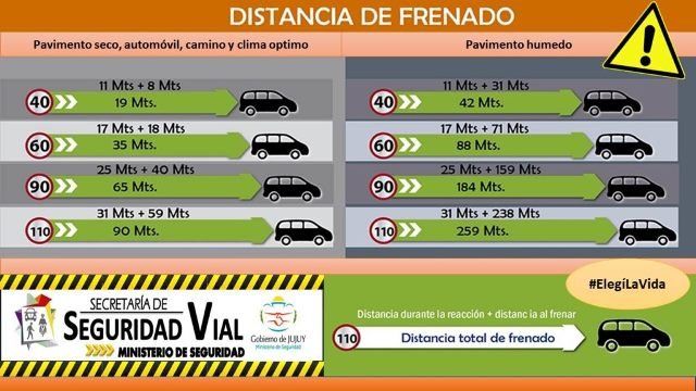 Es importante tener en cuenta cuanta distancia se necesita para poder frenar y para ello se confeccionó el siguiente cuadro: