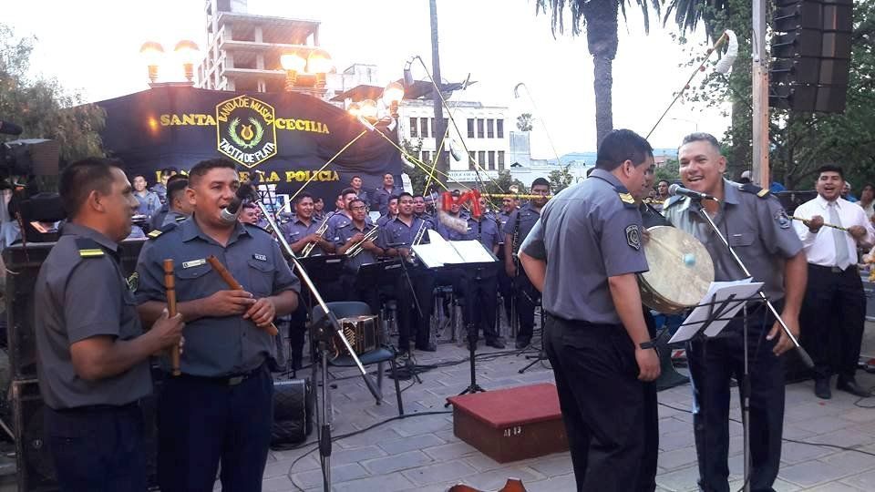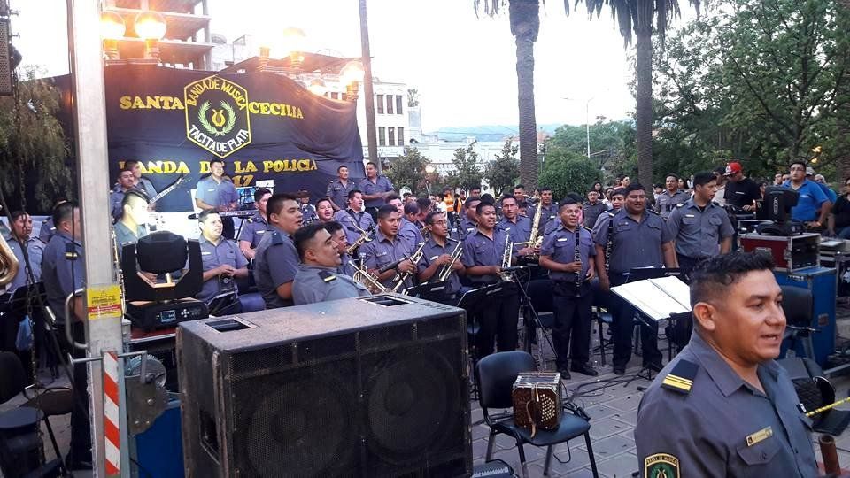 En honor a Santa Cecilia, la Banda de Música de la Policía de la provincia de Jujuy “Tacita de Plata” brindó un espectáculo en la glorieta de Plaza Belgrano. En el transcurso fueron sorprendidos con la entrega de un reconocimiento y la entrega del carnet profesional de músico por parte del SADEM, filial Jujuy.