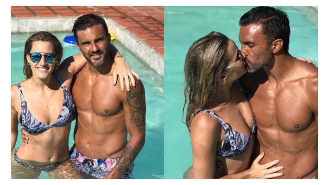 "Qué ganas tenia de verte. Me hacés tan feliz @micaviciconte", escribió él en la red social junto a fotos del reencuentro y un video del empujón que le dio a su novia para que se anime a tirarse a la pileta.