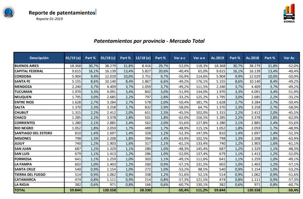 A nivel país, la consideración interanual marca una fuerte baja en todo el territorio: Misiones (63,9%), Chaco (62%), Jujuy (61,1%) y La Rioja (60,7%) son las provincias con mayores caídas de ventas.