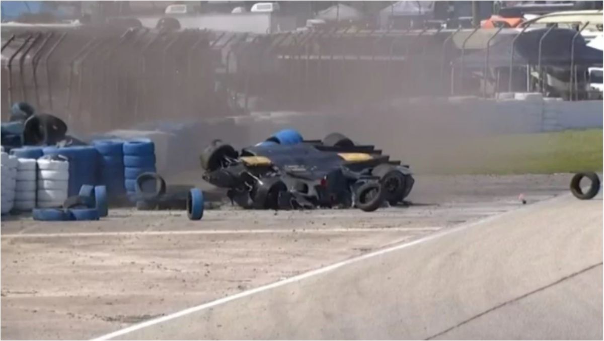 El piloto argentino sufrió un accidente en las 1.000 millas de Sebring. Por suerte, está bien y pudo salir caminando del auto.
