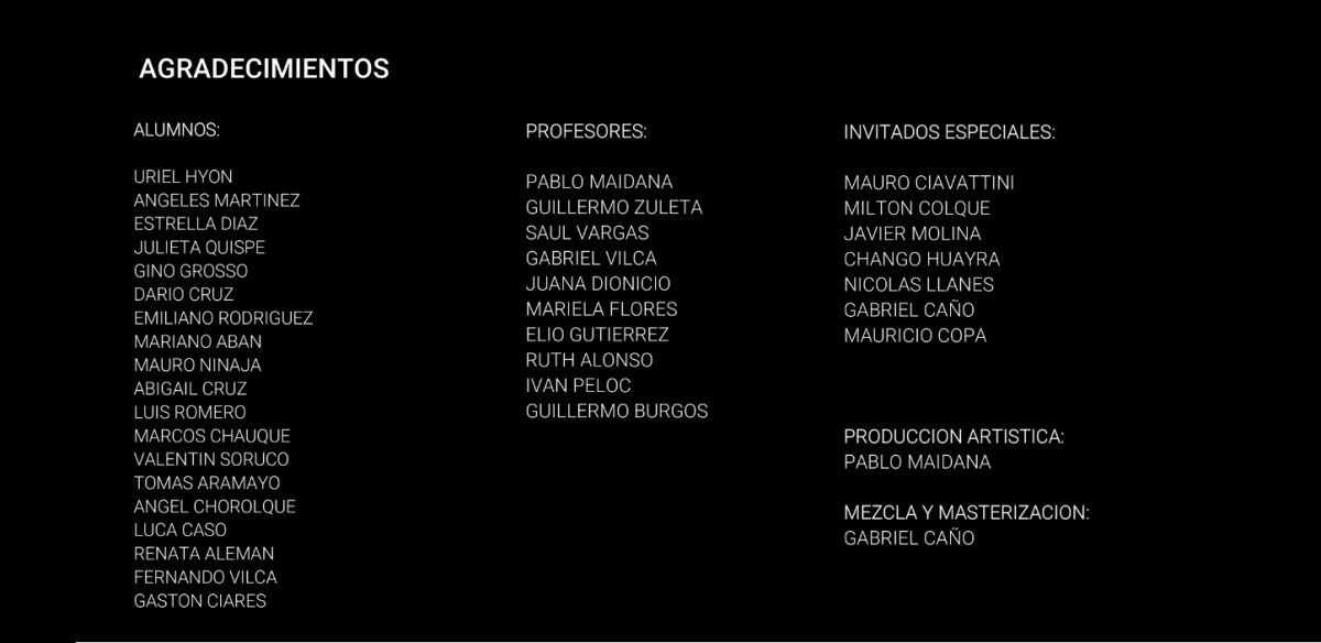 La realización de dicho trabajo costó alrededor de dos meses. El profesor Pablo Maidana fue quien tuvo a cargo la producción artística, mientras que la mezcla y masterización estuvo a cargo de Gabriel Caño.