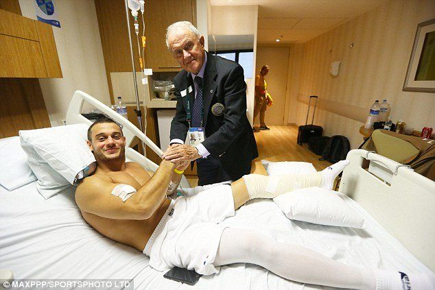 Samir Ait Said, el gimnasta que se rompió literalmente la tibia y el peroné en competencia se recupera en la villa olímpica.