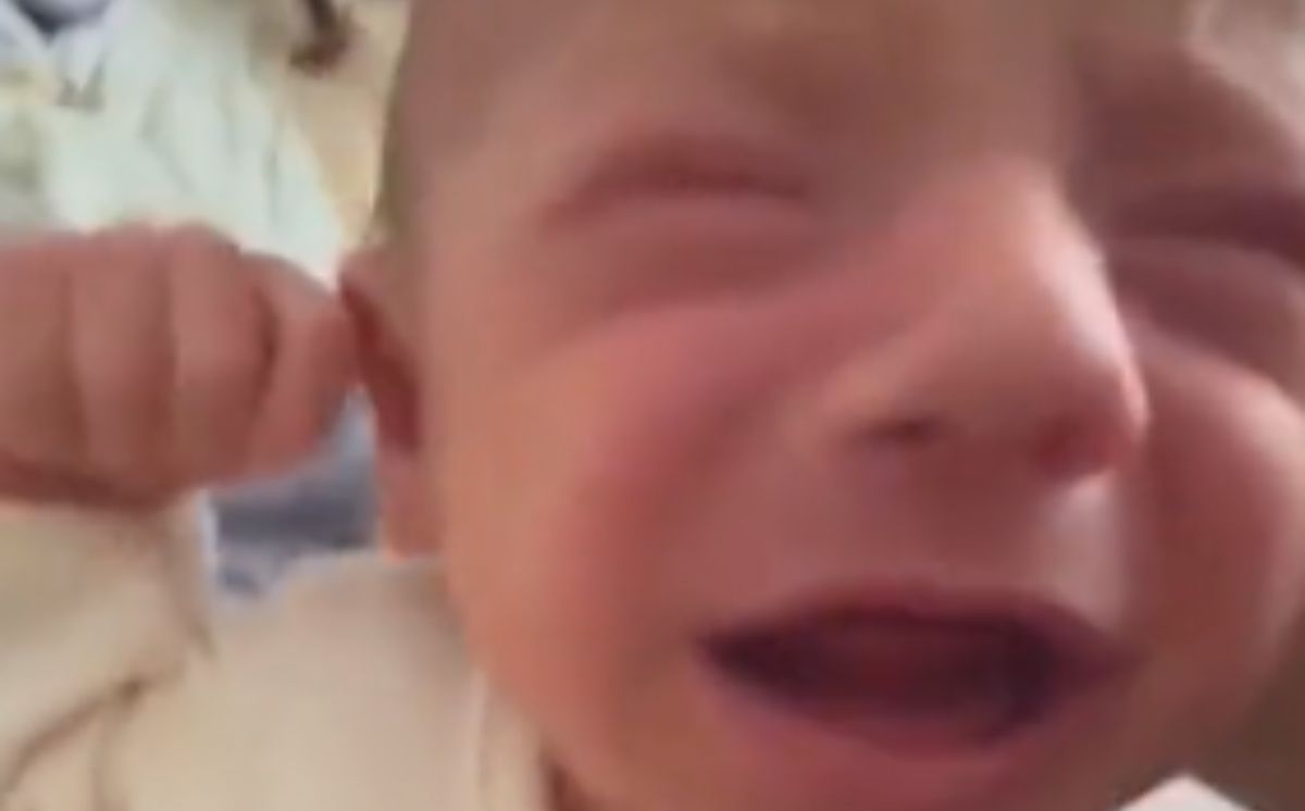 - Un pequeño niño recién nacido llora desconsolado.