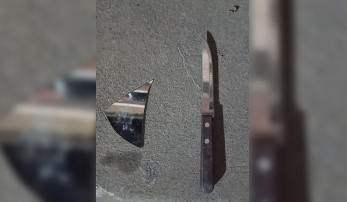Luego de ser trasladados a la unidad policial actuante, se identificó a los demorados y se realizó la requisa correspondiente, encontrándose en uno un cuchillo del tipo sierrita y en otro el pedazo de vidrio con forma triangular, con el cual habrían amenazado a la mujer.