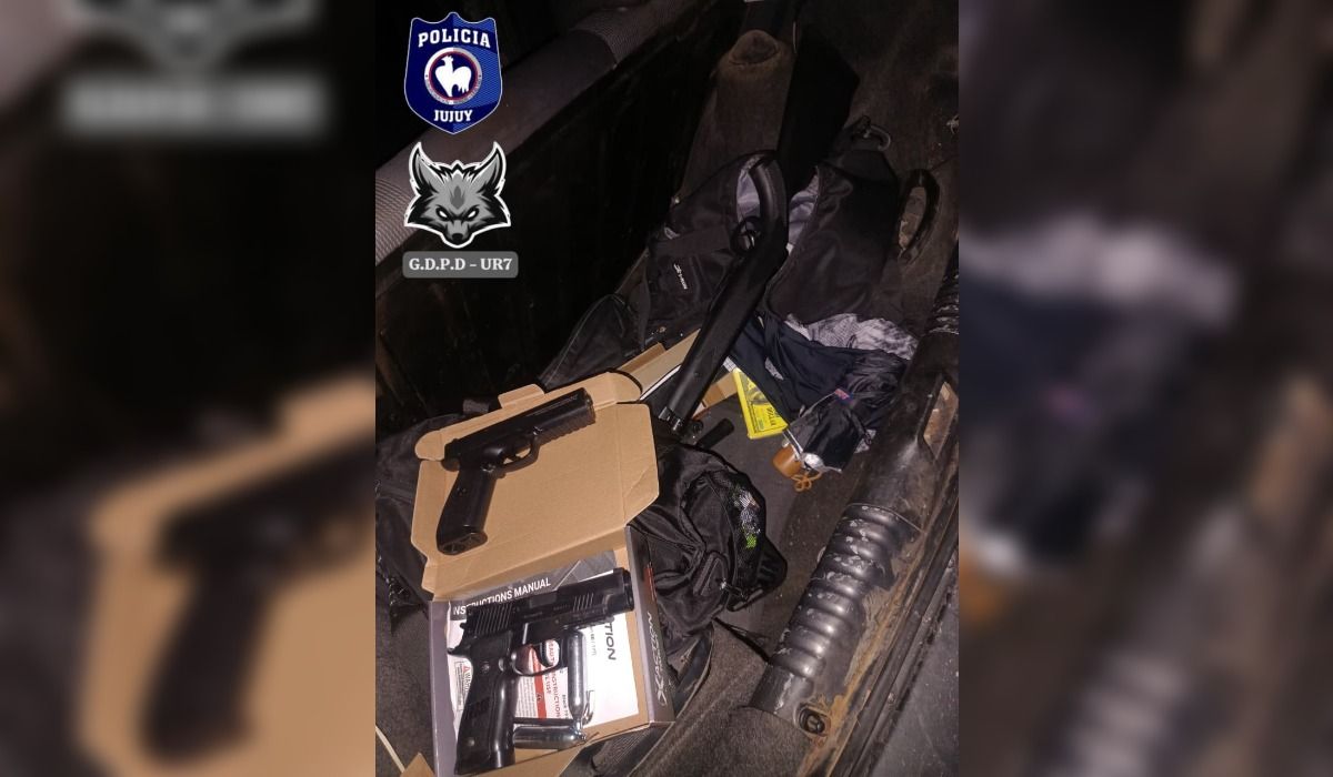Al revisar el baúl del rodado, se encontraron tres armas tipo aire comprimido, una larga y dos cortas, por lo que se dio intervención a la Fiscalía. Se dispuso el secuestro del vehículo, de las armas y la demora de dos personas para su identificación.