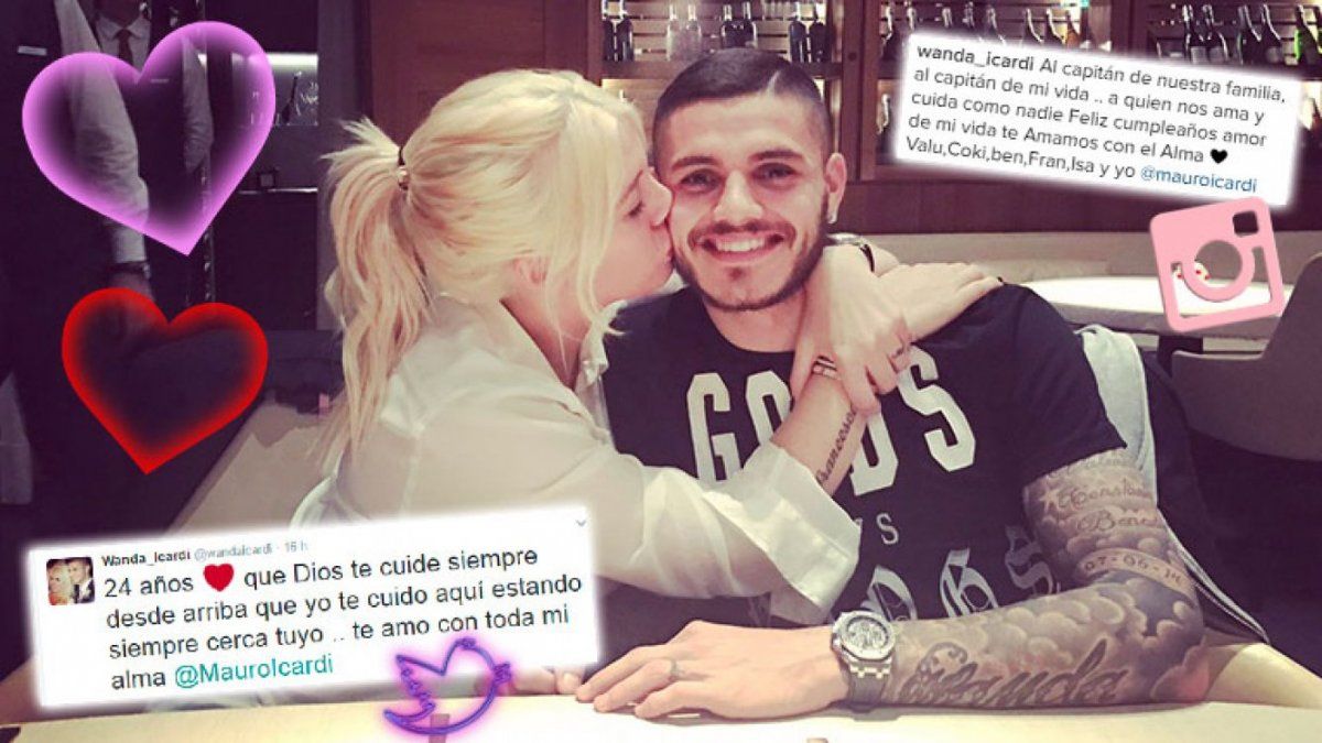 El domingo 19, Mauro Icardi celebró un año más de vida y Wanda Nara no dejó pasar la oportunidad para dedicarle unos tiernos mensajes en las redes sociales. La botinera top publicó fotos y saludos en sus cuentas de Twitter e Instagram. “24 años que Dios te cuide siempre desde arriba que yo te cuido aquí estando siempre cerca de ti. Te amo con toda mi alma ”, escribió la rubia en una de las fotos del íntimo festejo que compartió.