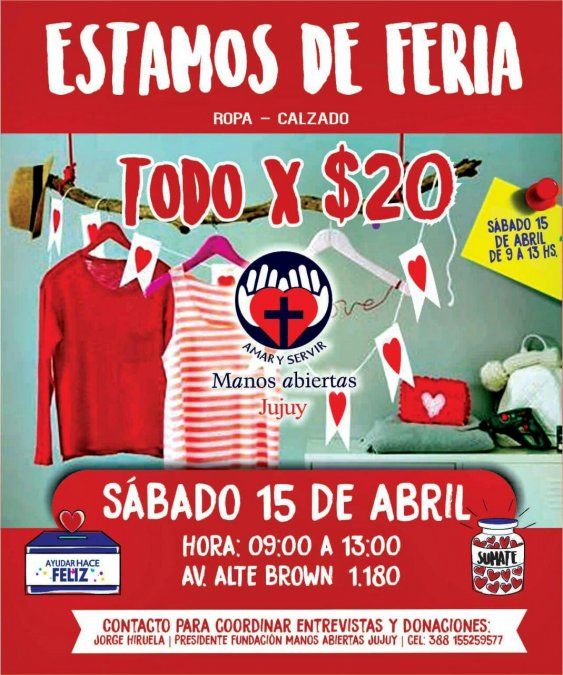 En el marco de semana santa, este sábado 15 de abril, la Fundación Manos Abiertas realiza una feria “todo por 20 pesos” para recaudar fondos con el propósito de seguir ayudando a gente en situación de calle.