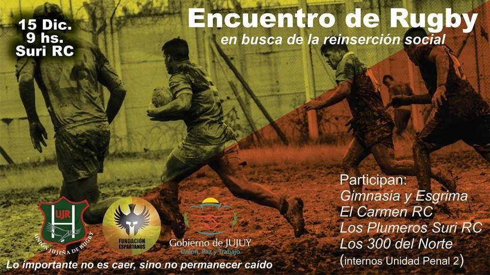 Bajo la consigna “lo importante no es caer, sino no permanecer caído”, el sábado 15 de diciembre a partir de las 9 de la mañana y hasta las 13hs, se llevará a cabo en las instalaciones de Suri un encuentro de Rugby del que tomarán parte los 300 del Norte, Gimnasia y Esgrima de Jujuy, El Carmen Rugby Club y Los Plumeros de Suri RC.