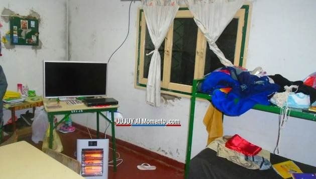En las fotos se pudo ver algunas comodidades, como un televisor LED, un DVD, material de lectura y electrodomésticos para calefaccionar el ambiente.
