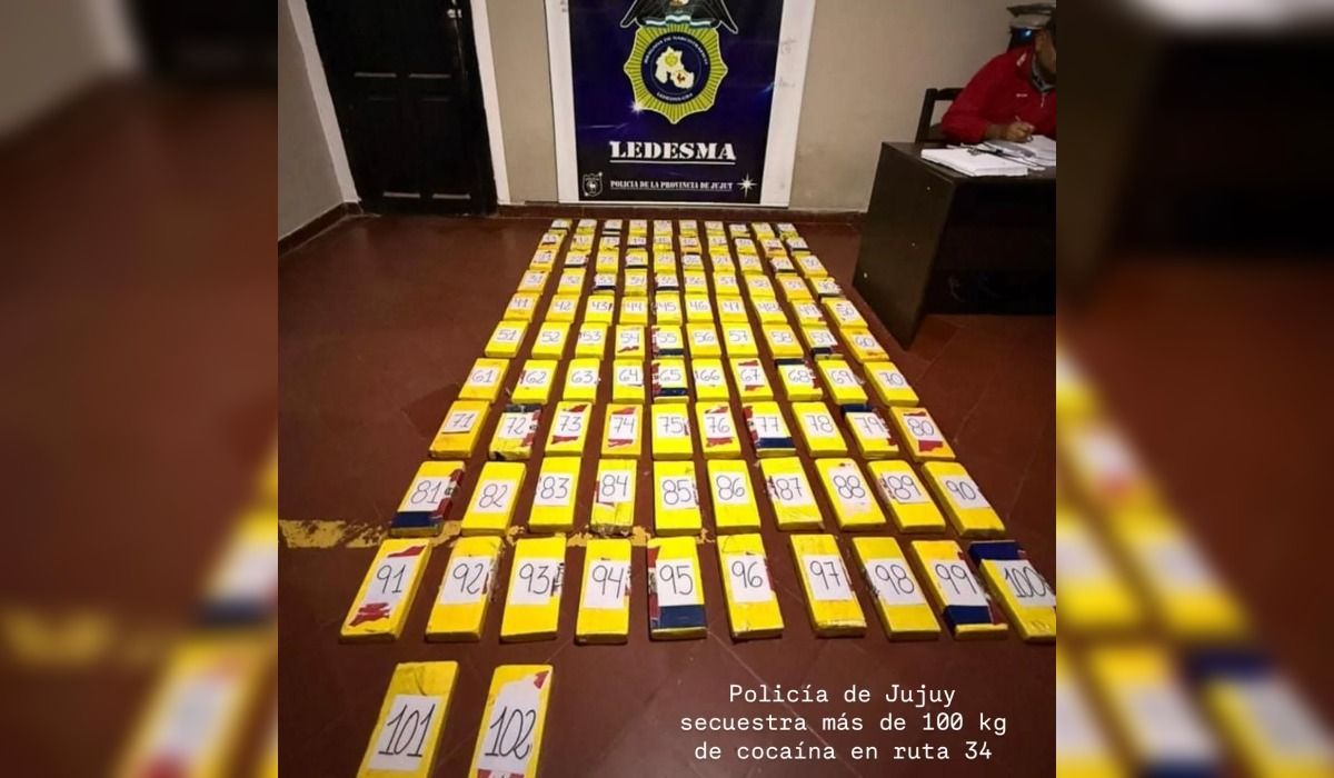 Un importante operativo contra el crimen organizado en la Ruta nacional Nº 34, a la altura del puesto de control Río Piedras, en el departamento Ledesma, permitió el secuestro de más de 100 kilos de cocaína y la detención de dos personas.