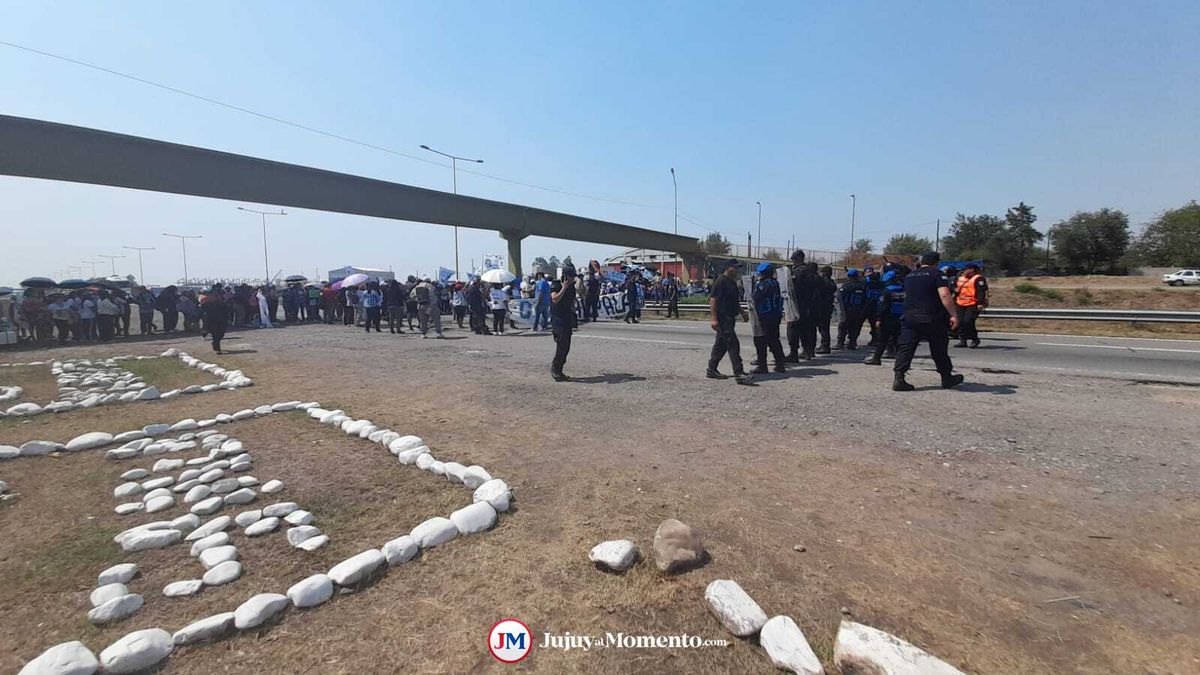 - El corte fue levantado por la policía pero quienes protestan permanecen al costado de la ruta a la altura del Parque Industrial de Palpalá.