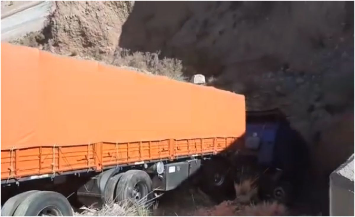 El rodado con acoplado de gran extensión perdió el control y terminó impactando al costado de la Ruta 9. El siniestro se produjo a la altura del Paraje Inca Cueva, en cercanías a Tres Cruces.