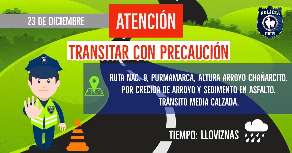 Por otro lado, se requirió circular con precaución entre las localidades de Bárcena y Volcán porque se registran lloviznas con presencia de neblinas bajas.