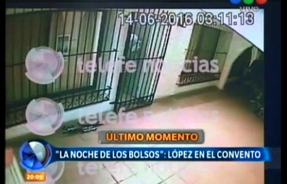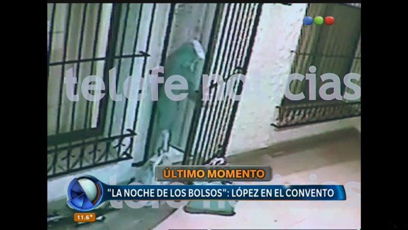 El programa Telefé Noticias difundió anoche un video en el que se ve al ex secretario de Obras Públicas del kirchnerismo, José López, en el momento en el que llega al convento de la localidad de General Rodríguez con bolsos, minutos antes de que sea detenido.