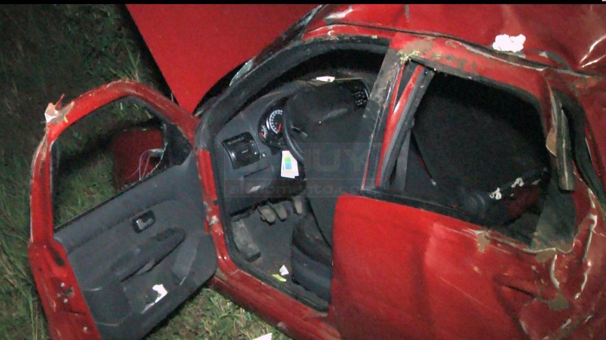 Por causas que se intentan establecer un auto Fiat Siena color rojo que circulaba sentido sur norte derrapó y perdió el control cayendo a una zanja de tres metros de profundidad.