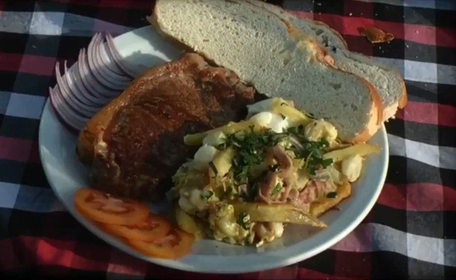 En un plato amplio ubicaremos Bife se Chorizo y lo coronaremos con nuestro Revuelto Gramajo Norteño. Un poco de perejil picado y ¡Plato terminado!