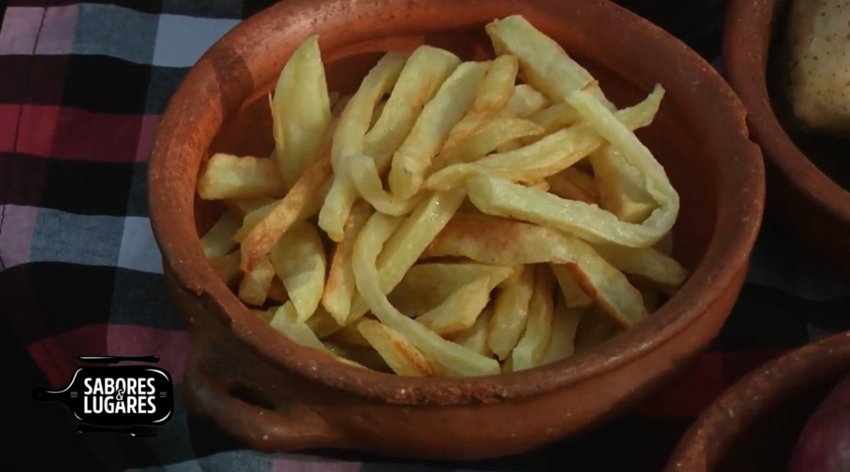 Para el Revuelto Gramajo. Pelar las papas y cortarlas en bastones finos. Freirlas en abundante aceite y retirarlas antes de que doren. Reservar.