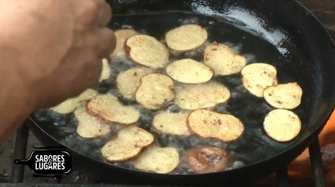Fritar los papines, previamente cortados.