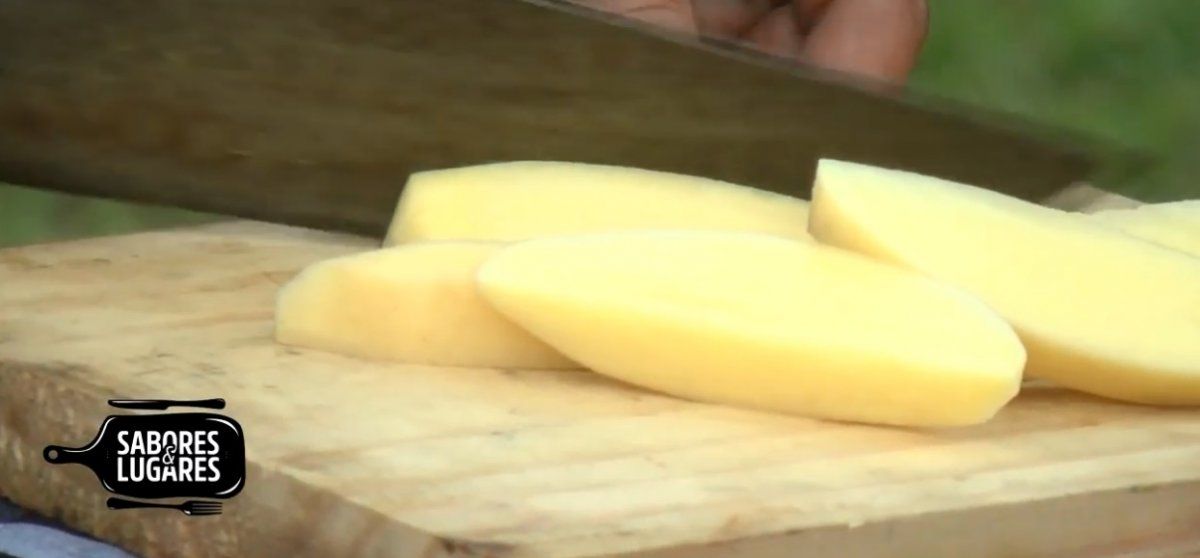 Luego pelar y cortar las papas de manera longitudinal como forma de cuña. Reservar.
