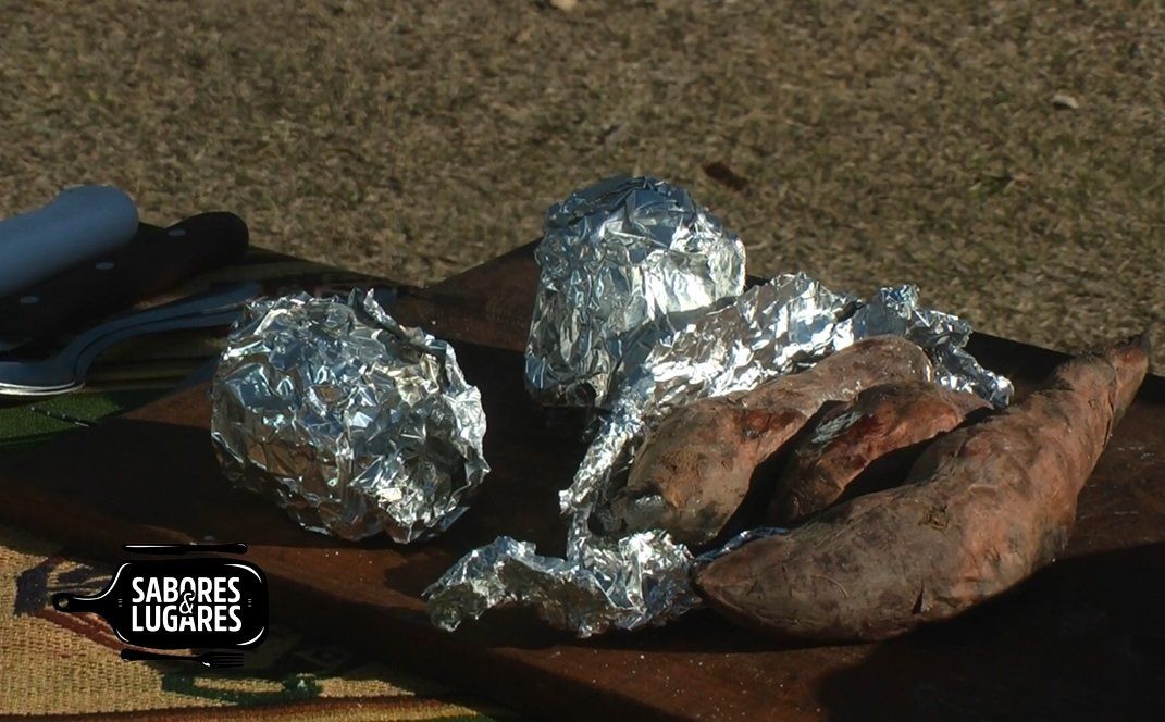 Colocar batatas y corianitos al rescoldo. Una vez cocidos pisar para realizar puré.