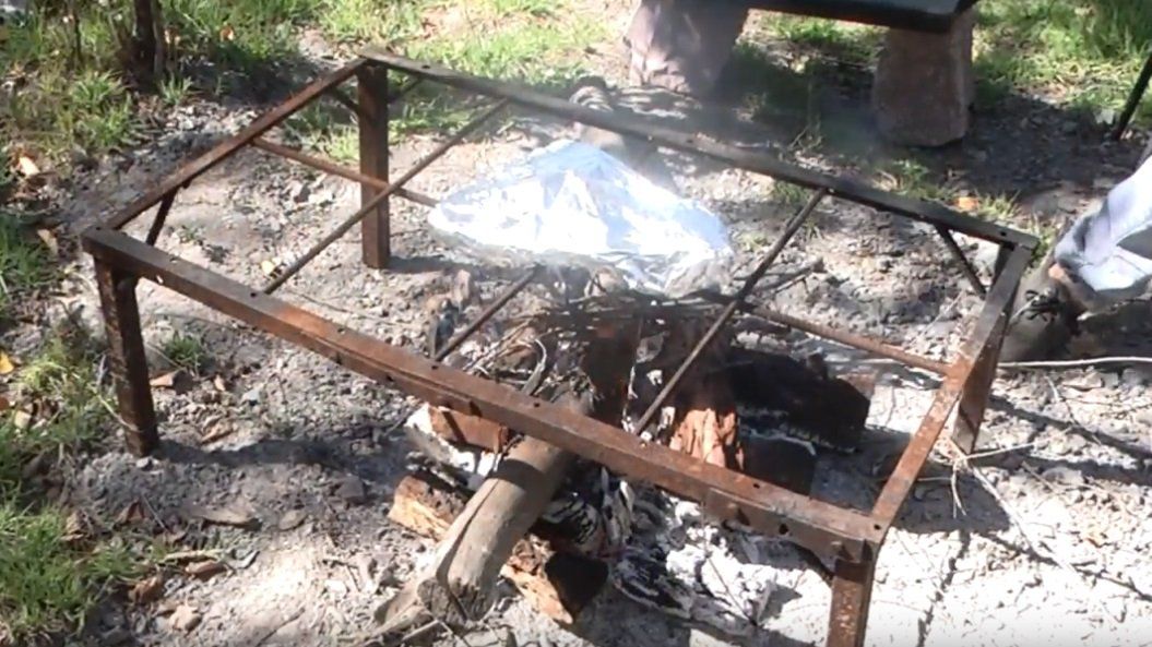 Chequear el fuego que este con buena llama porque va a ser nuestro medio de cocción. Debemos mantener una buena llama durante nuestro tiempo de cocción, para que obtengamos una cocción paraje de la Pieza. Recordemos que ubicaremos la Pierna del lado del hueso.