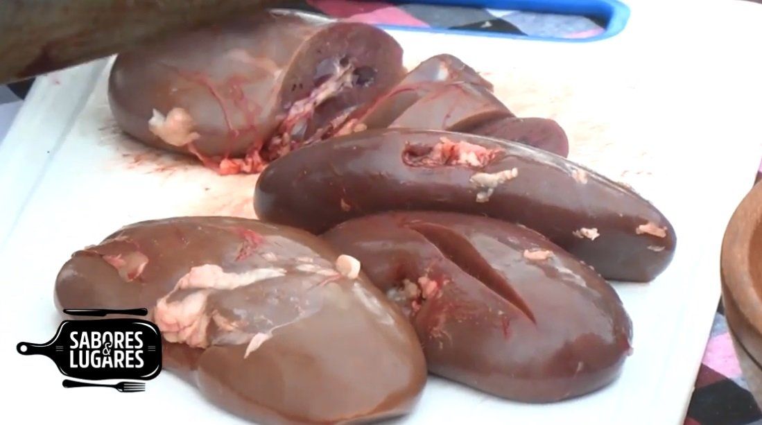 Limpiar los Riñoncitos y dejarlos en salmuera, una hora como mínimo, cambiando el agua de dos a tres veces. Luego cortaremos en rodajas y reservar.
