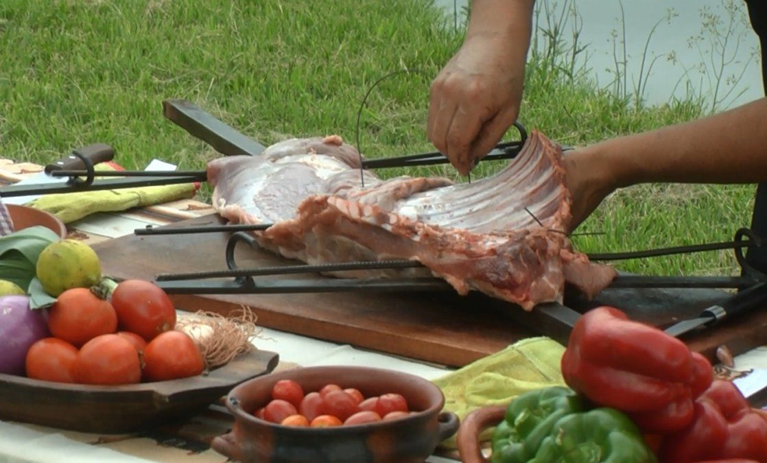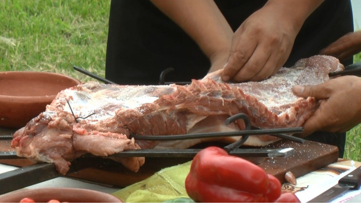 Limpiar el costillar y ubicarlo en la cruz. Asegurar bien la pieza a la estructura. Salar y reservar.