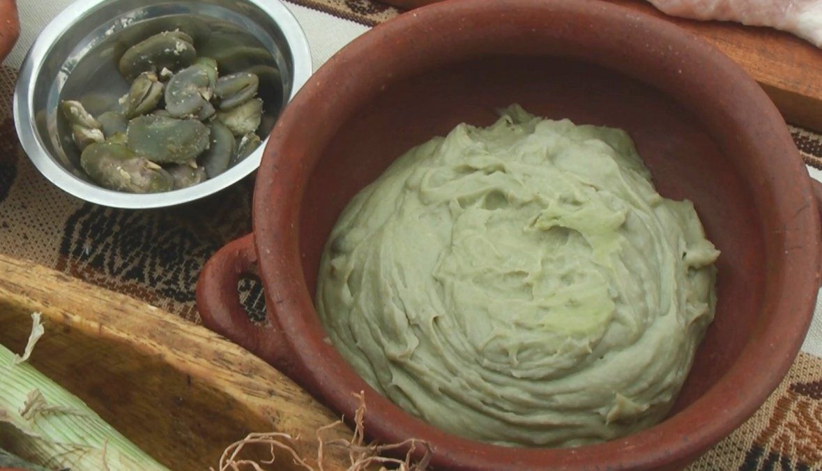 Pelar las habas y hervir en una caserola, durante unos 15 minutos aprox. Colar, pisar y reservar. En un recipiente colocar el puré de haba, la crema, sal y pimienta. Reservar hasta servir.