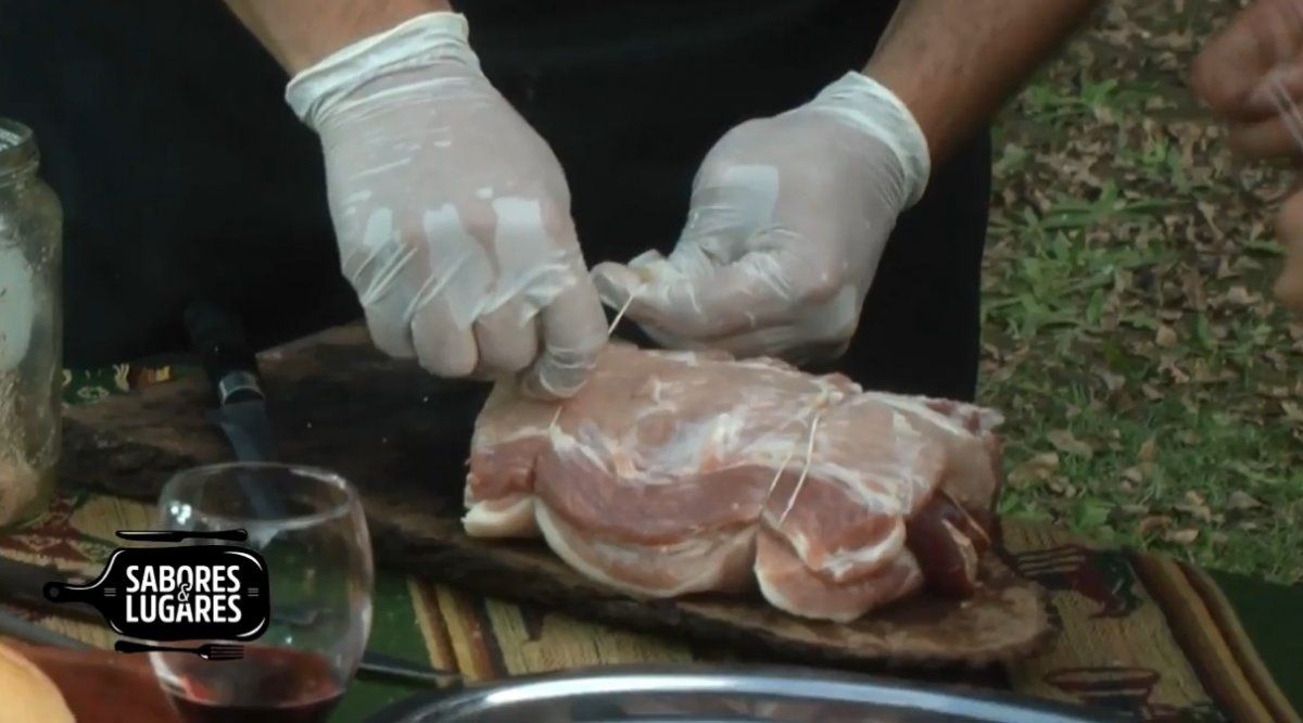 Vamos a limpiar nuestro lomo de cerdo, retirar del centro una parte de lomo, para rellenar con la carne de llama.