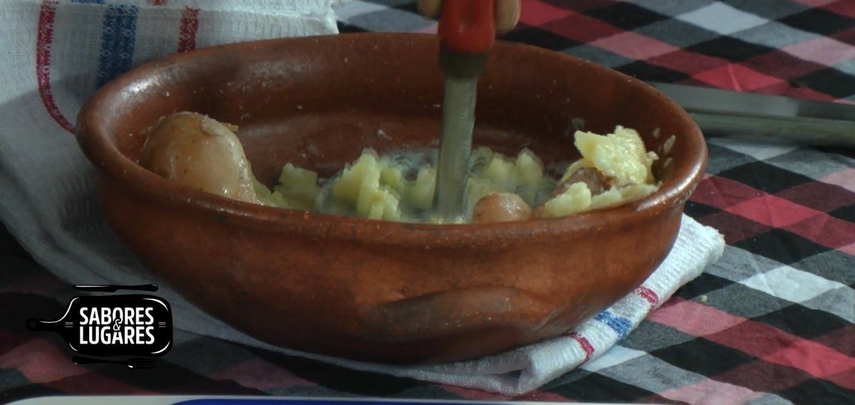 Pasado este tiempo, escurrir el agua y pisar los papines junto con la cáscara.