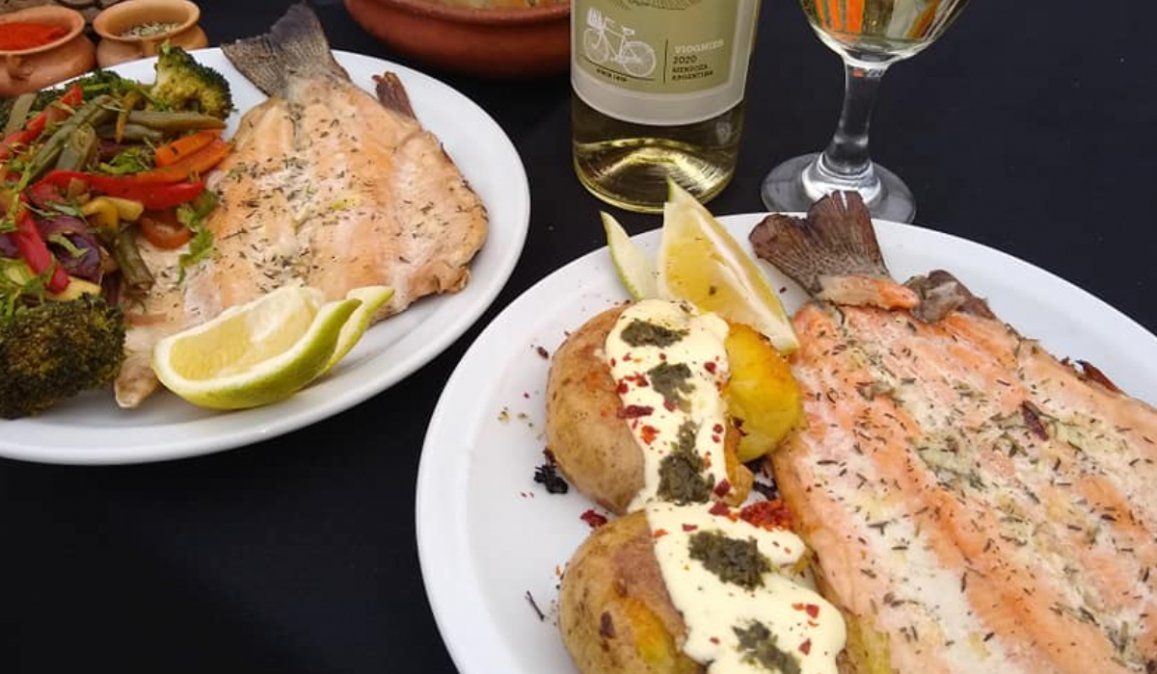 Juntos cocinaron una deliciosa receta: trucha asalmonada con vegetales salteados y papá chancada.