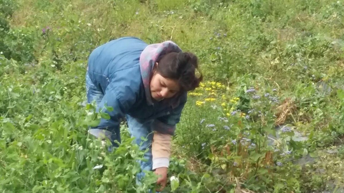Jimena con tan solo quince años trabaja en el campo cosechando arvejas para ayudar a sus padres. Una vez que termina al mediodía, va a la escuela.
