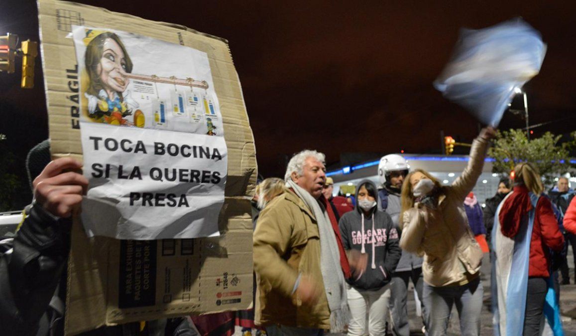 A través de las redes sociales, estas personas se convocaron para declarar “persona no grata” al presidente. Cánticos, bocinazos, banderas y pancartas con insultos decoraron la manifestación que fue contenida por efectivos policiales.