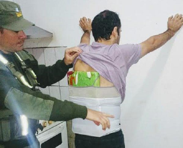 La mujer, que llevaba a su supuesta hija en el regazo, mostró dificultad en el movimiento al comenzar la inspección, por lo que personal femenino procedió a realizar una requisa personal con presencia de testigos. La misma llevaba adosado a su cuerpo dos bultos de nylon transparente que contenía una sustancia de color blanca.