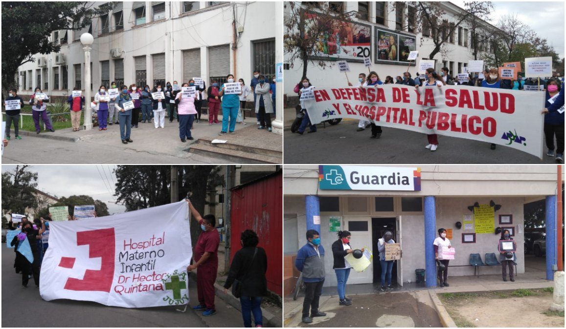 El reclamo se llevó adelante con aplausos, bocinas y pancartas de los trabajadores del sector en la puerta de cada hospital y centro de salud de la provincia.