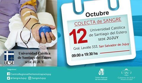 El Centro Regional de Hemoterapia sigue profundizando en la campaña de donación . Alumnos, profesores y transeúntes tendrán hoy la posibilidad de donar sangre en el aula 8 de la Universidad Católica de Santiago del Estero, ubicada en Lavalle 333 hasta las 19:00