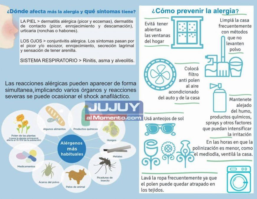 Entre los cuadros más frecuentes se encuentran las complicaciones respiratorias, como el asma o la rinitis, que suele presentarse con mucosidad, picazón de nariz y lagrimeo de ojos. Las estadísticas establecen que del 25% al 40% de la población padece rinitis. Además, se estima que del 5% al 19% de los argentinos sufre de asma, y en el 80% de los casos, el origen es alérgico.
