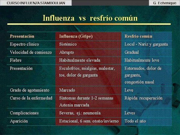 Entonces, ¿cómo diferenciar una gripe (o lo que se conoce como influenza o “flu”) del resfriado o catarro común (rinitis viral)?