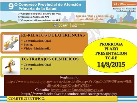 Profesionales y estudiantes de Jujuy y del interior del país relacionados al área sanitaria participarán a partir de mañana jueves del noveno Congreso Provincial, séptimo regional del NOA, sexto Congreso Andino y segundo Latinoamericano de Atención Primaria de la Salud (APS), que contará con disertantes de organismos nacionales e internacionales.