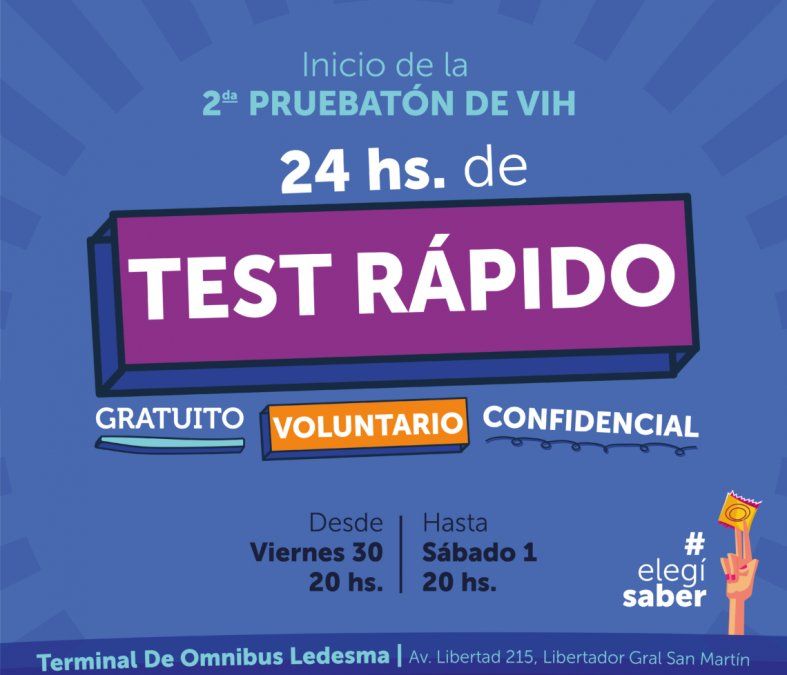 El Hospital Oscar Orias realizará la 2° Pruebatón para que la comunidad de Ledesma pueda acceder al Test rápido, gratuito, voluntario y confidencial, para detección del VIH-SIDA. La jornada será en la Terminal de Ómnibus.