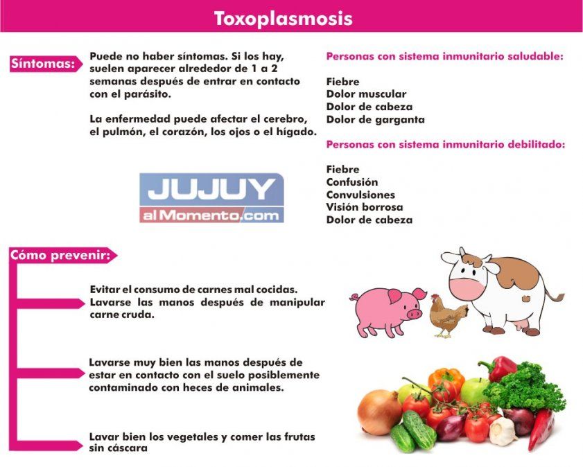Esta infección que se transmite por el ingreso al organismo de un parásito, el protozoo Toxoplasma gondii. Apenas una de cada diez personas afectadas presenta síntomas de esta infección. Por ley se debe pedir el estudio para confirmar o descartar esta infección durante el primer trimestre del embarazo, según los especialistas.