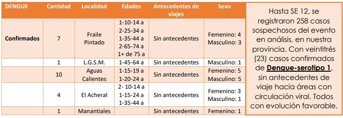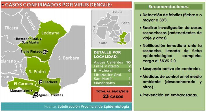 Este martes se sumaron tres nuevas personas con resultados positivos al estudio de dengue, todas de la localidad de Fraile Pintado. Hay preocupación en el área de Salud ante la cantidad de casos, y piden tomar todas las precauciones necesarias.
