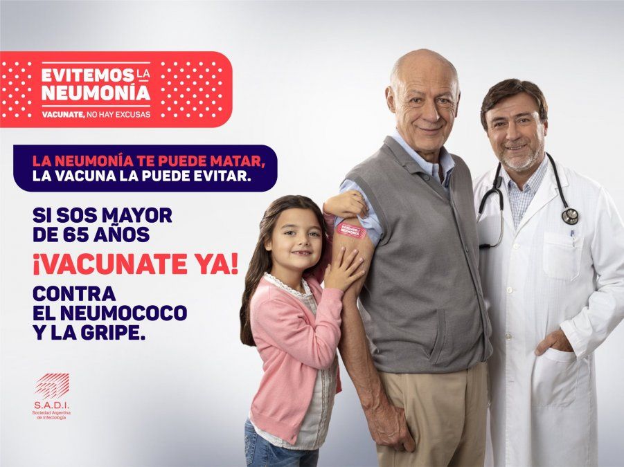 Por tal motivo, la Sociedad Argentina de Infectología (SADI) lanzó por tercer año consecutivo su campaña Evitemos la Neumonía, dirigida a los mayores de 65 años y a las personas de entre 18 y 64 años con factores de riesgo, con el objetivo de incrementar la concientización en la comunidad sobre la neumonía y la importancia de ayudar a prevenirla mediante la vacunación.