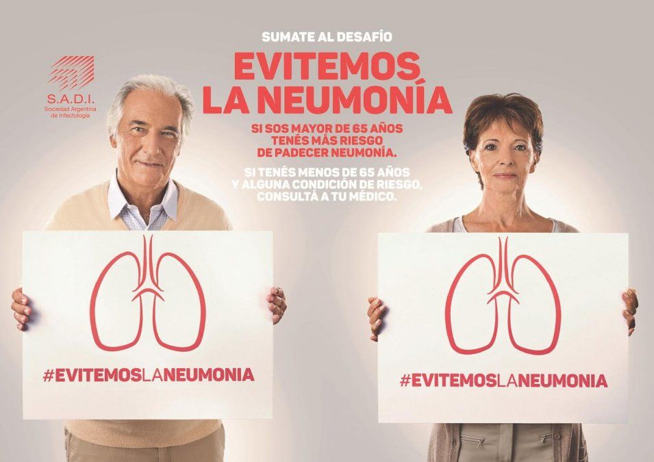 Para prevenir la neumonía, la Sociedad Argentina de Infectología (SADI) lanzó una campaña de concientización denominada ‘Evitemos la neumonía’, mediante la cual se buscará involucrar no sólo a la población que debe recibir la vacuna, sino también a su entorno, a los trabajadores de la salud y a los medios para promover la vacunación en los grupos que presentan más riesgo de tener complicaciones y fallecer a causa de esta enfermedad.