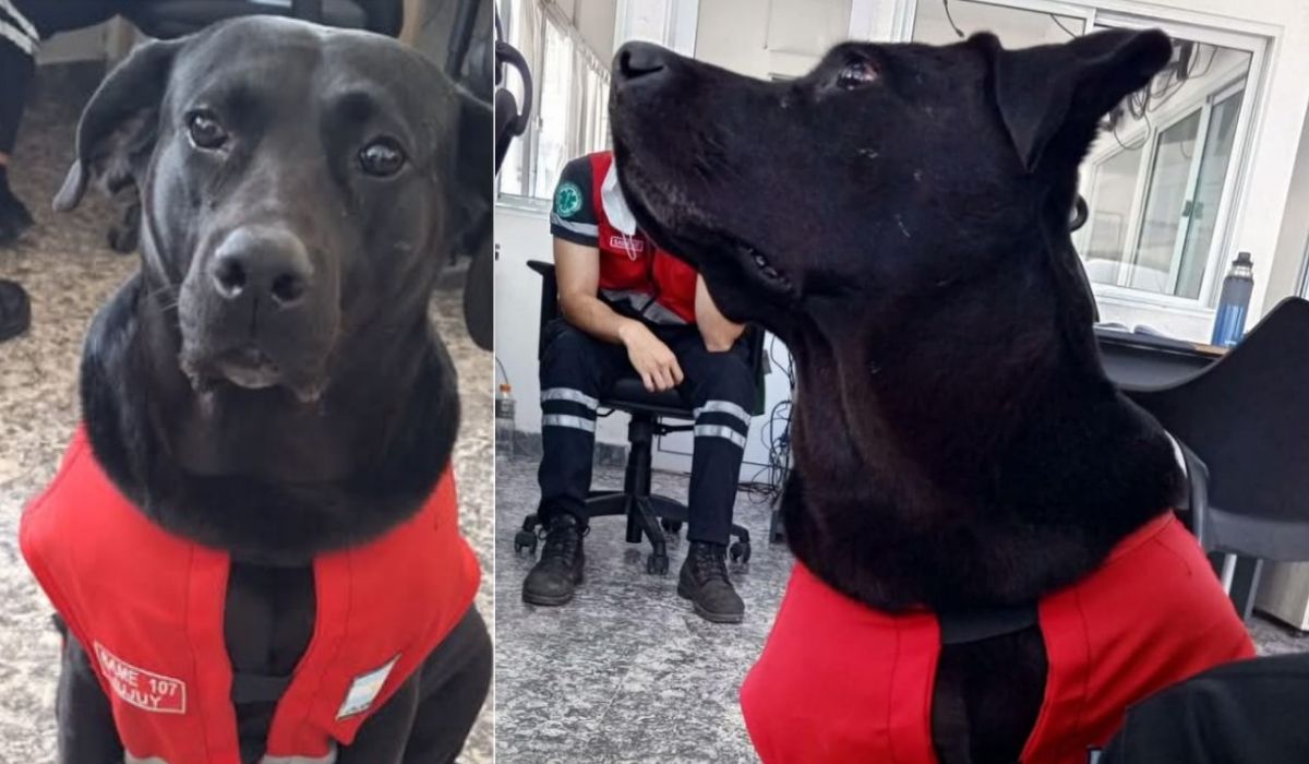 Una perra de porte mediano, pelaje color negro y un chaleco del SAME, Sistema de Atención Médica de Emergencias de la Provincia de Jujuy es buscada intensamente.