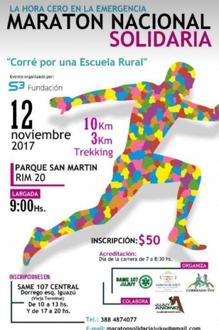 Bajo el lema "Corré por una escuela rural " este domingo se llevará a cabo el evento auspiciado por el SAME y la Fundación S3 en simultáneo con Córdoba y La Pampa.